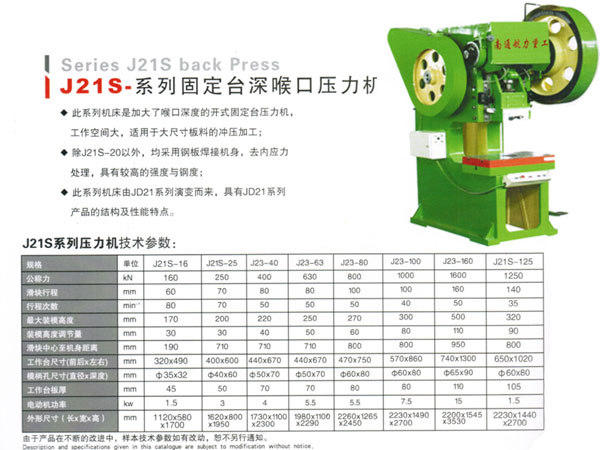 J21S固定臺深喉口壓力機